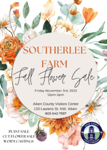 Come to the Aiken County Visitor Center for a special Fall Flower Sale with Southerlee Farm featuring plants, cut flowers, and worm castings
